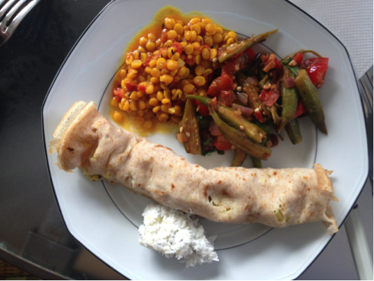 En créant des paires céréales et légumineuses, un aliment suffisant en un acide aminé, équilibrera l’autre dans lequel le même acide aminé est limitant. En Inde on mange riz et lentilles, en Afrique du nord couscous et pois chiches, en Amérique du sud maïs et haricots rouges…