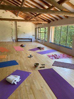 Des tapis et des coussins pour la pratique sont disponibles dans la salle.